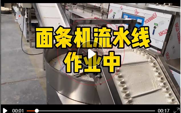 通過拌面機拌好的面絮,放入面條機內,通過多組壓面軸,連續壓面成面片進入刀口,生產出不同規格的面條,圓面條,扁面條,方型面條,菱形面條,刀削面,方形面片等。