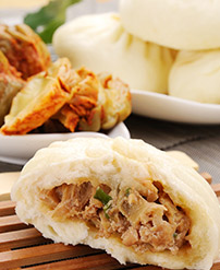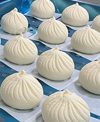 仿手工包子機(jī)采用仿手工搟面的方式將面皮壓成合適厚度。再由出餡部分將餡料填充至面皮上,經(jīng)由卷面部分卷成圓柱形狀,傳送至成型部分成型,過程中不會(huì)破壞面皮筋性,保持手工原味。