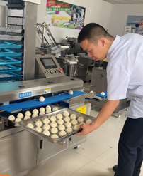 工作流程:供餡料斗->供面?zhèn)鬏攷?>包制->切斷成型->傳送帶->醒發(fā)->蒸制。