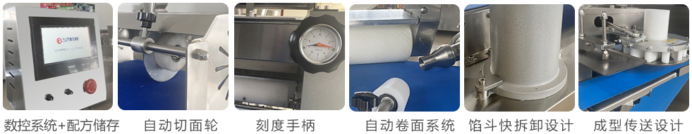 采用PLC系統(tǒng),供面比例,供餡比例,成型速度都可單獨(dú)控制也可同步控制,按包子克得大小可存儲(chǔ)配方,操作便捷,省時(shí)省心。
