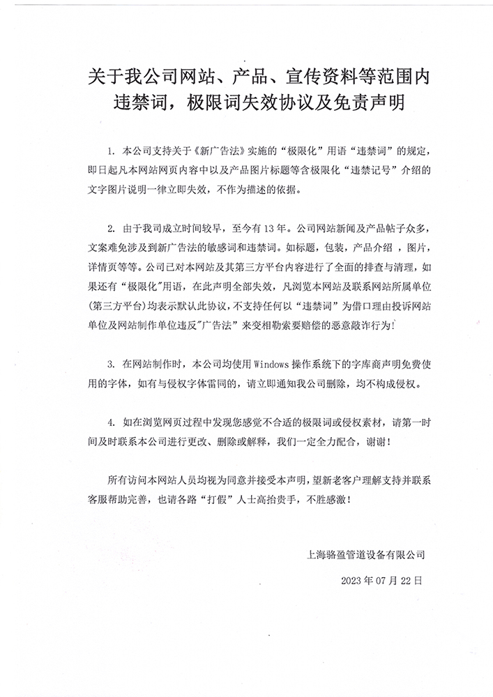 關(guān)于我公司網(wǎng)站、產(chǎn)品、宣傳資料等范圍內(nèi)違禁詞,極限詞失效協(xié)議及免責(zé)聲明 ?